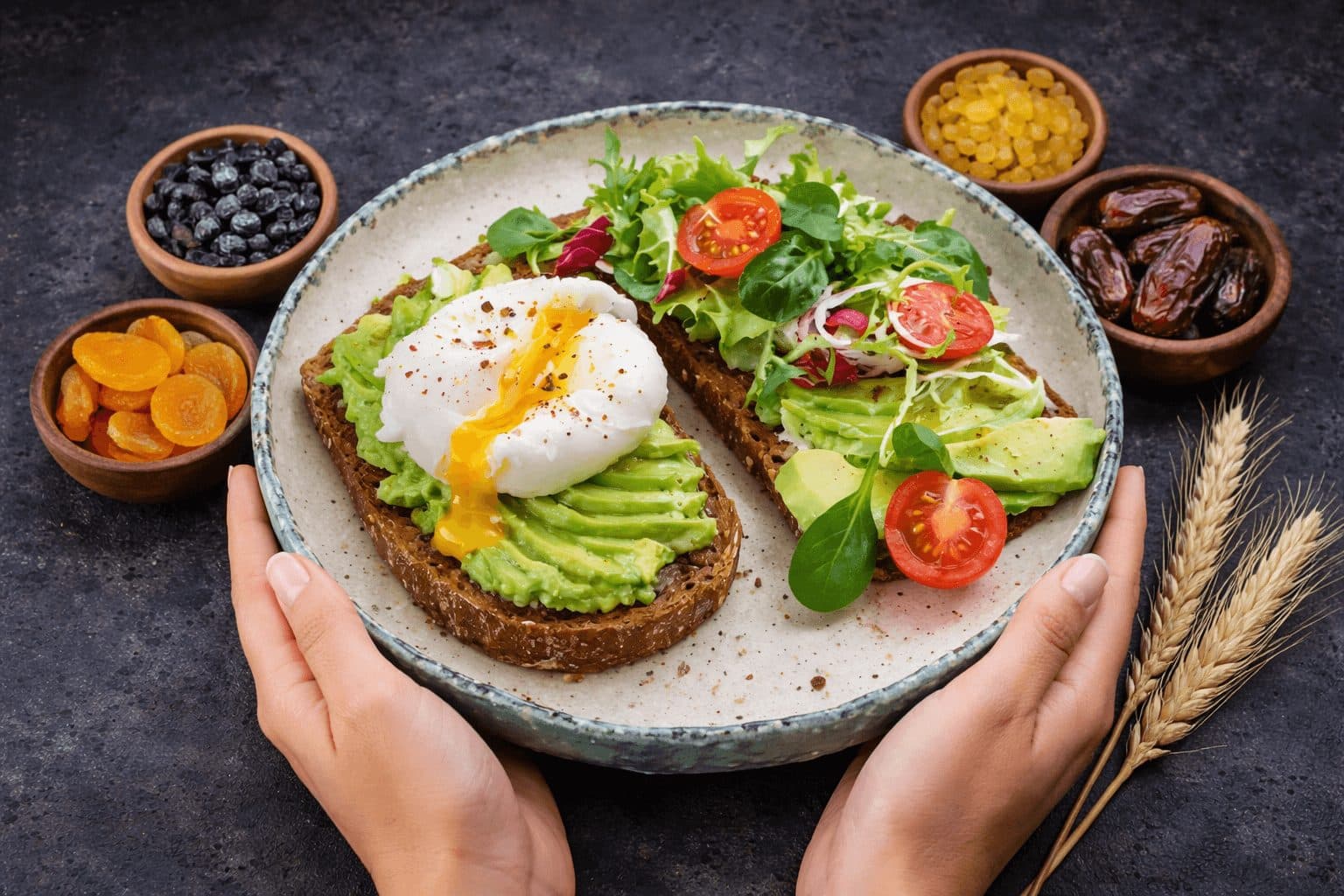 السابع توست قمح، أفوكادو، بيض خيار سحور صحي للرجيم غني بالدهون الصحية والبروتين.